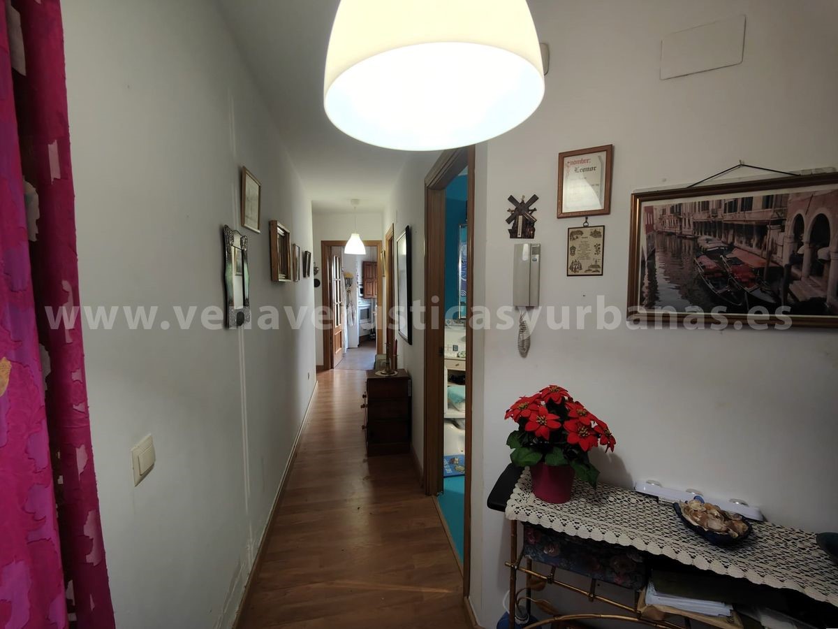 Pasillo distribuidor.Amplio salón-comedor, muy luminoso, con gran ventana a la calle de situación, con rejas y contraventanas de madera.
