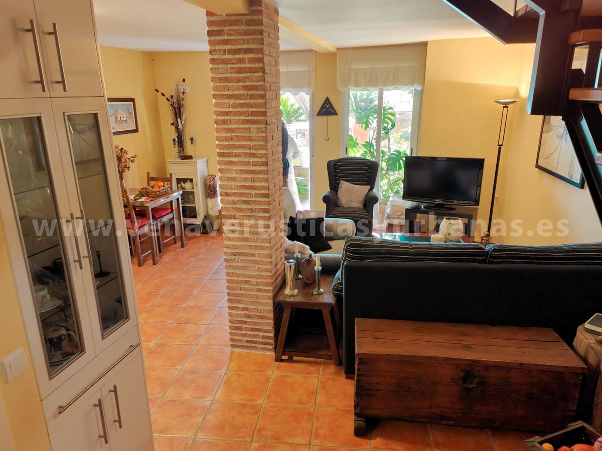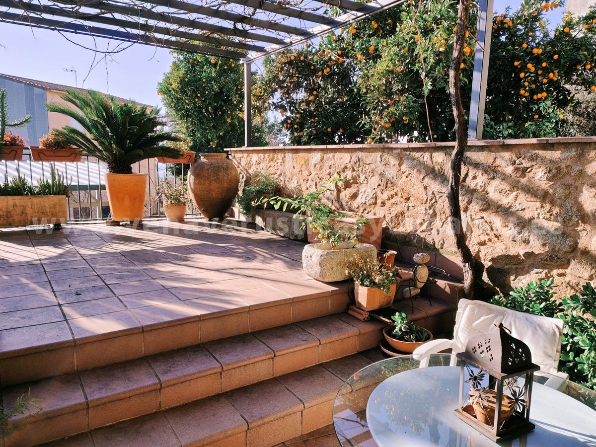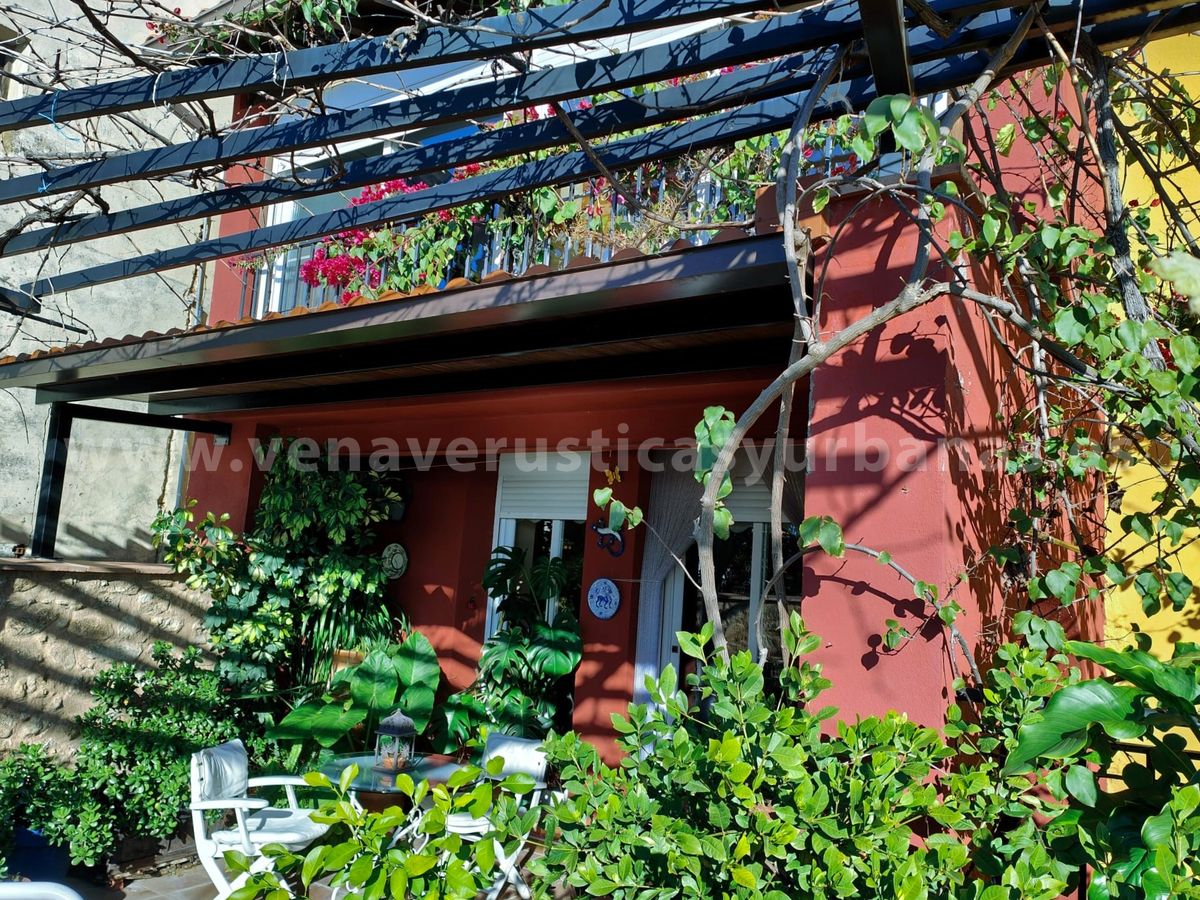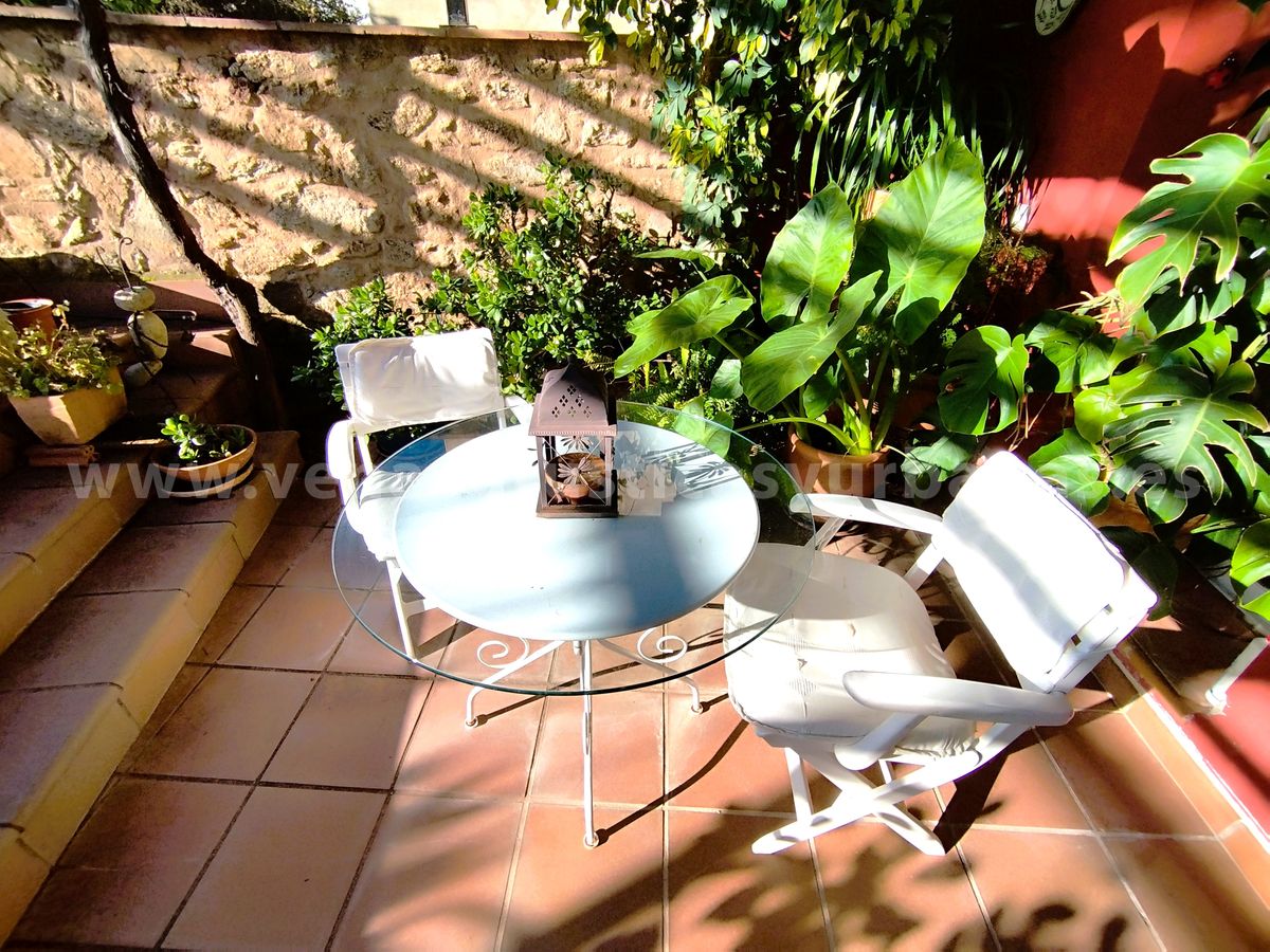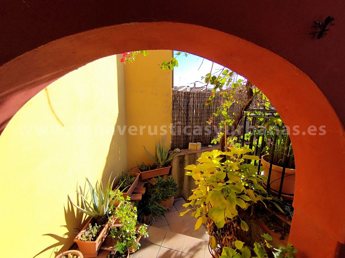 Patio: de unos 50m2, cuenta con el patio propiamente, techado, junto con una terraza sobre la bodega-almacén que se sitúa en un nivel inferior, el acceso a esta se hace desde el patio tras un bonito arco, que da personalidad a todo este maravilloso espacio, ideal para el ocio, el relax y los amantes de las plantas. Sobre la terraza y patio una estructura metálica sostiene una gran parra y una hermosa buganvilla.