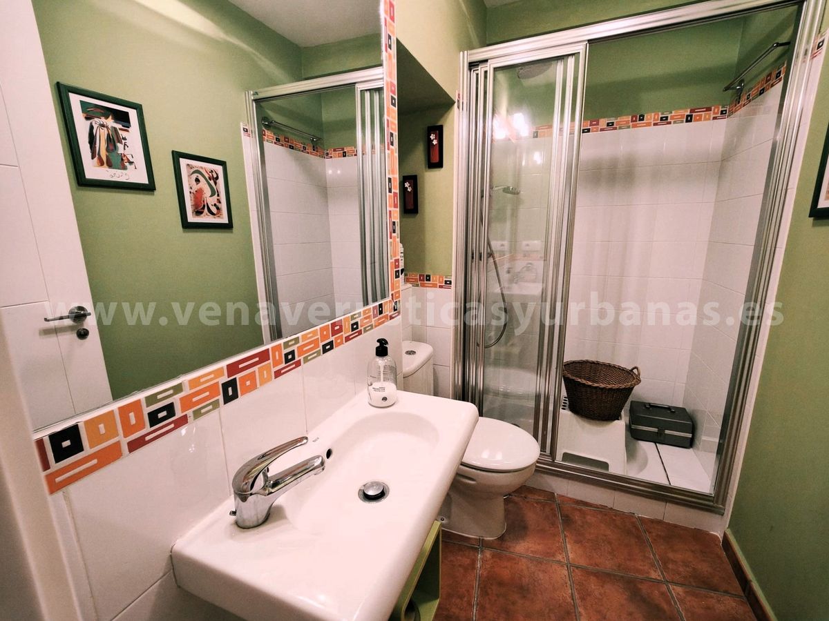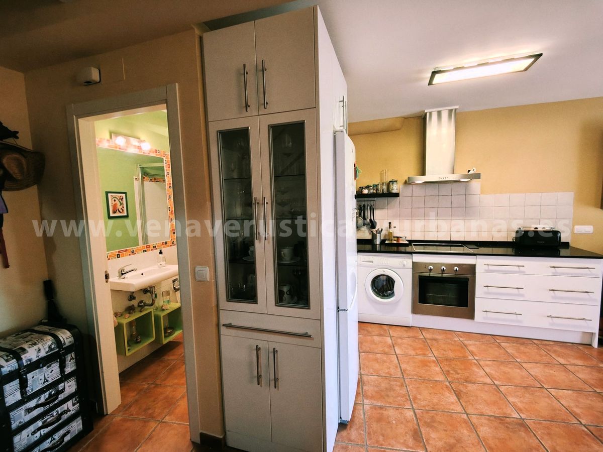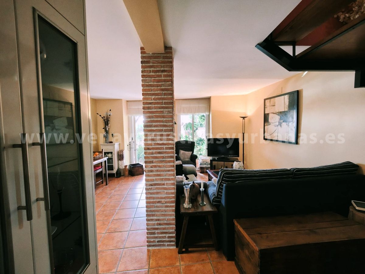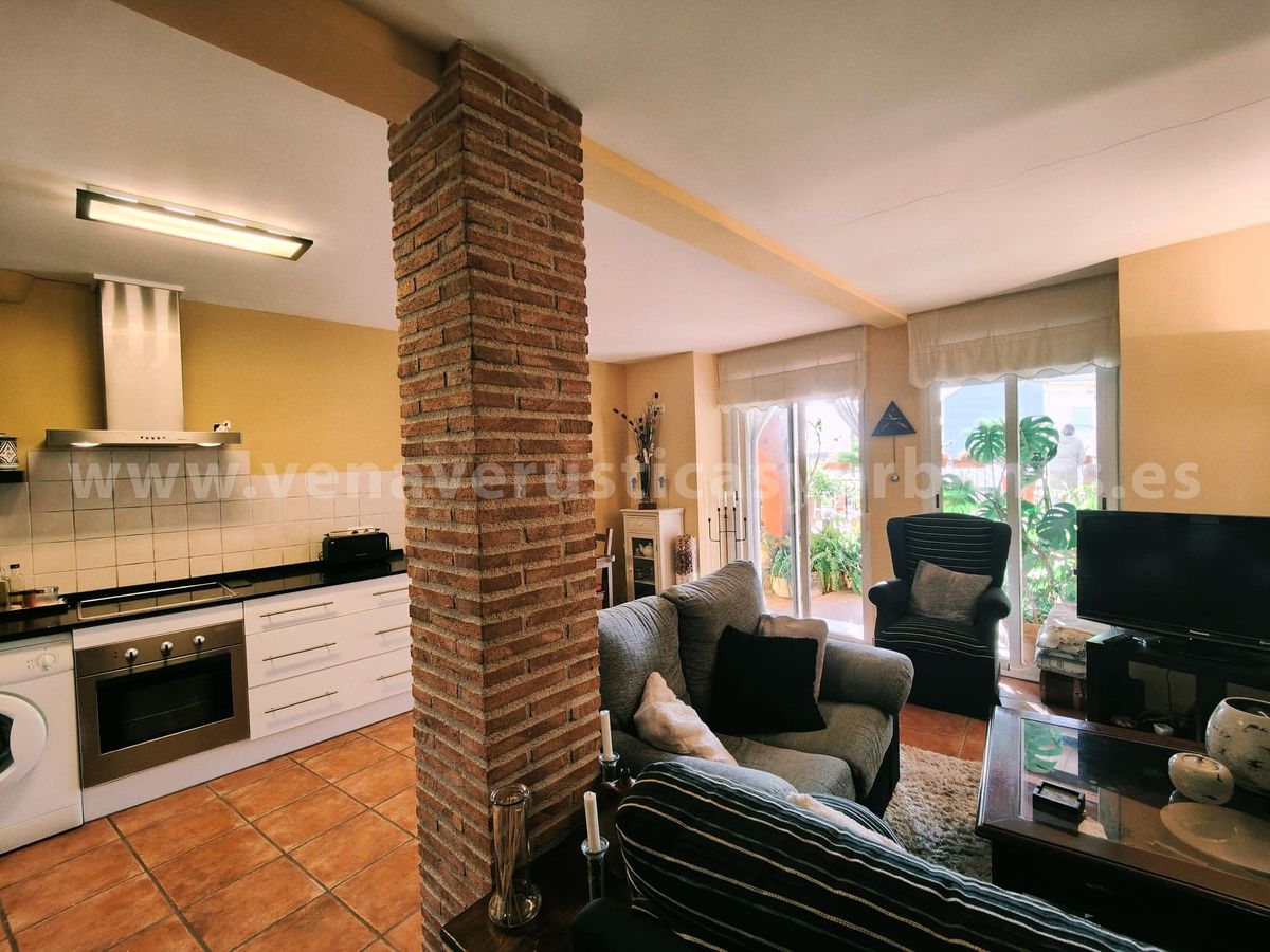 Cocina amueblada y equipada, salón y comedor.Una gran puerta y ventana nos comunican y dan paso al patio, con toda su luz y verdor de sus plantas.Cuarto de baño con ducha.