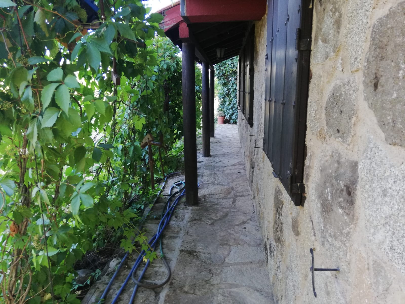 Carpinterías exteriores (climalit) e interiores en madera. La casa se encuentra chapada en piedra de granito de alta calidad, consta de contraventanas y sistema de alarma.
