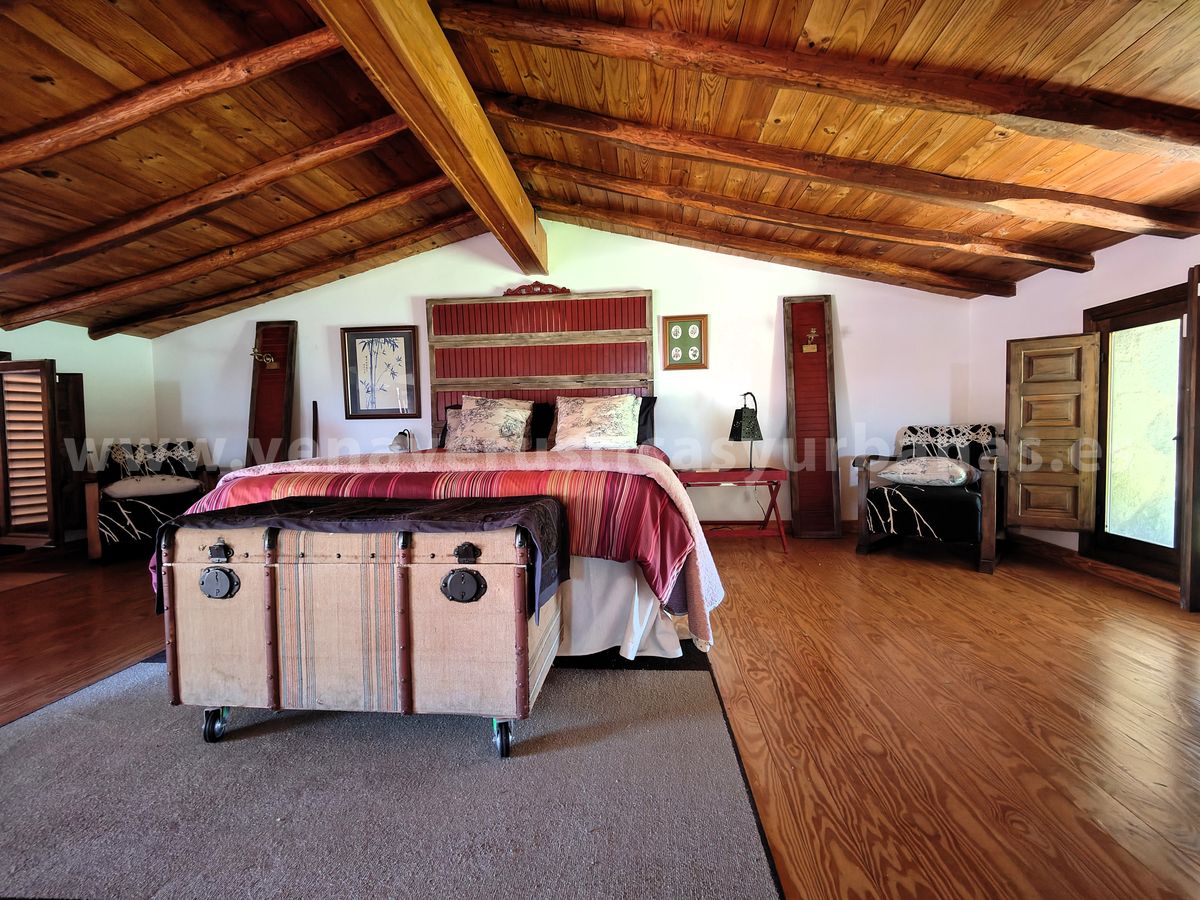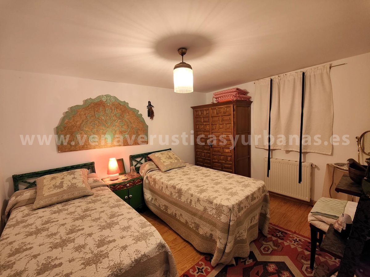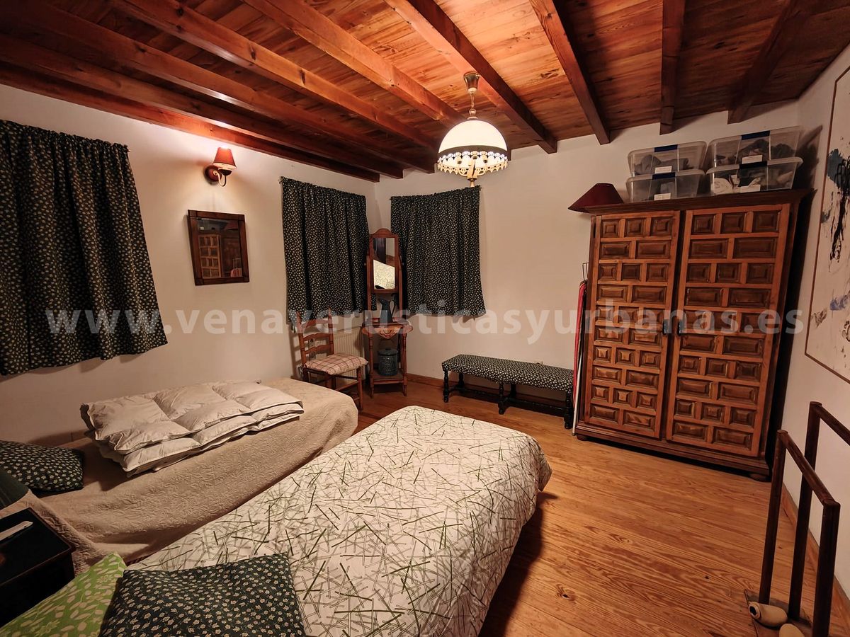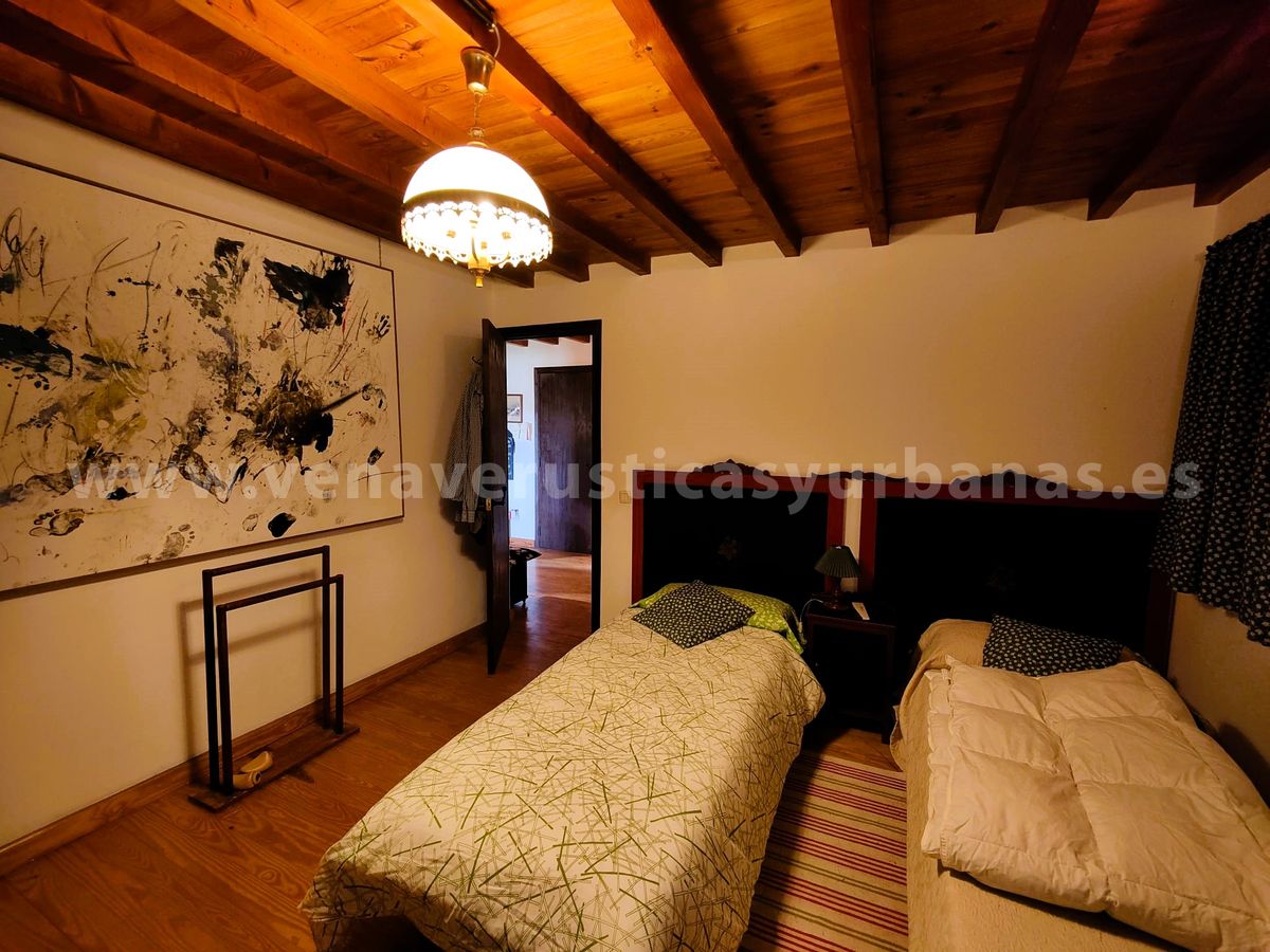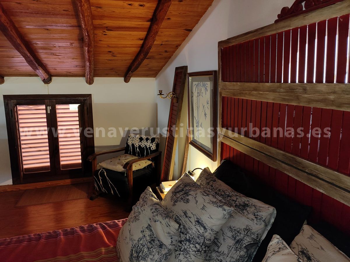 Dos dormitorios y cuarto de baño completo con bañera. Los techos de viguería de madera y suelos de tarima de madera.