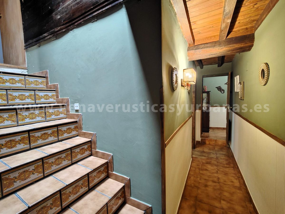 Zócalos y techumbre de madera. Bajo las escaleras tiene un espacio de almacenamiento, con un curioso cuatrisquel labrado.