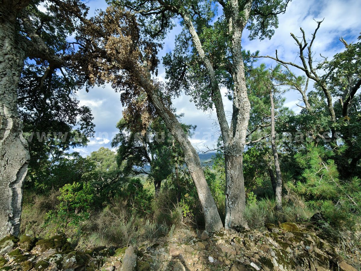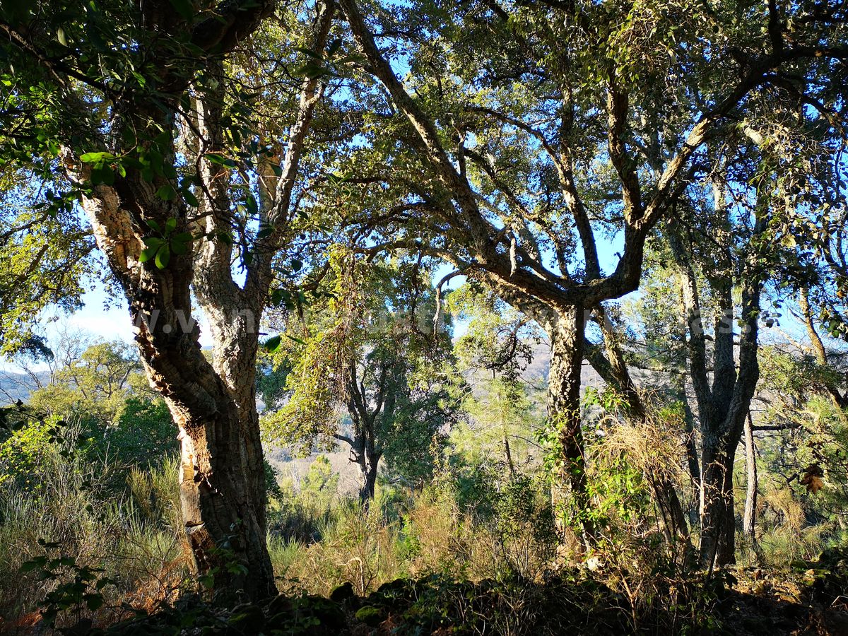 - Arbolado: Autóctono, alcornoques, robles, madroños, castaños, pinos etc...y monte bajo
