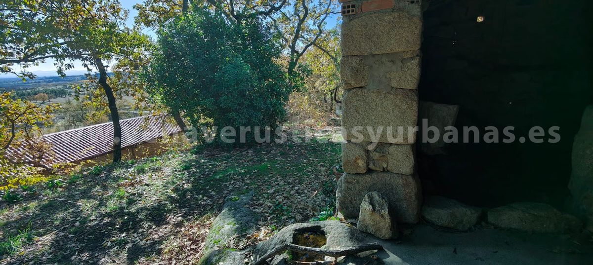 Discreta, semioculta entre los robles, los almeces y las grandes rocas cubiertas de musgos, pero mostrando toda su belleza y potencial. Misteriosa, la vieja enramada de piedra domina la propiedad: al norte la Sierra de Gredos, al sur, la vasta planicie hasta la lejana silueta de los montes de Toledo.